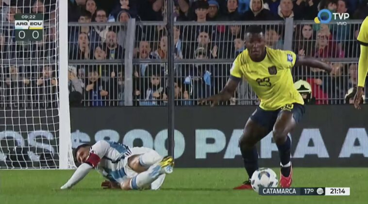 Ubwo Messi yatakaga Caicedo yamucenze ubundi uyu mukinnyi ufatwa nk’uwambere hasi yikubita hasi.