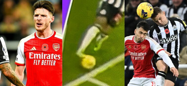 Ifoto ikomeje gucaracara ku mbuga nkoranyambaga zitandukanye igaragagaza uburyo umukinnyi wa Newcastle yakuye umupira inyuma y’umurongo mbere y’uko Arsenal itsindwa igitego cyatumye abakunzi bayo barara babaye: