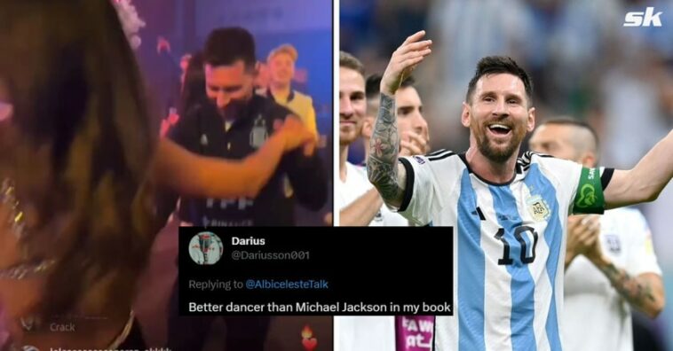 Umukino urangiye abakinnyi bagiye mu kabyiniro ariho Lionel Messi yagaragaye abyinisha umugore we Antonella Roccuzzo.