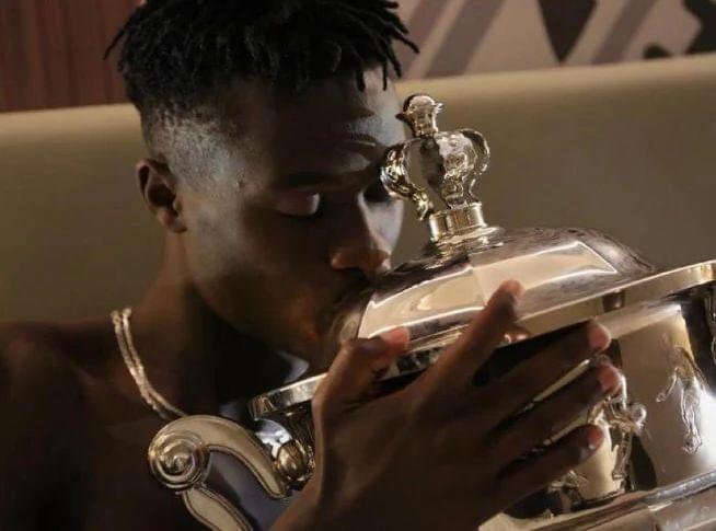 Myugariro w’ikipe y’igihugu Amavubi Imanishimwe Emmanuel Mangwende yegukanye igikombe cya Shampiyona.