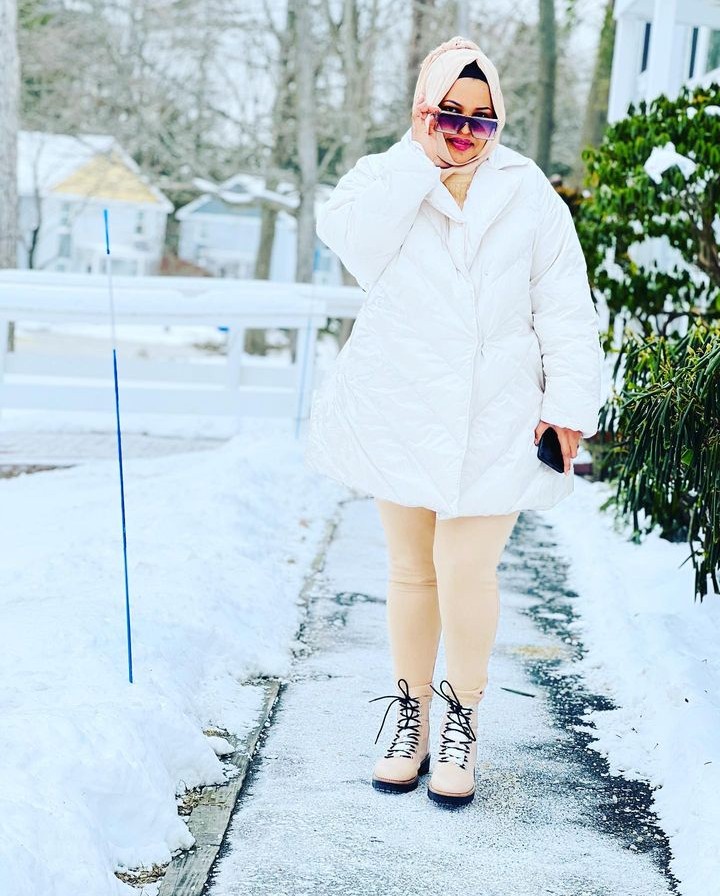 Mu mafoto yashyize hanze abereye ijisho ni amafoto yifotoreje mu rubura ndetse yambaye n’imyambaro y’imyeru.