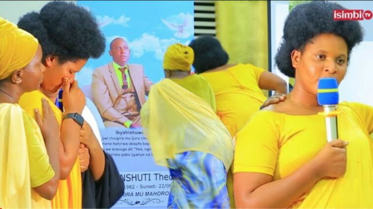 Uwanyana Assia, umugore wa nyakwigendera pasiteri Theogene yari ari kumwe n’umuryango we, nyina n’uwo yita se ndetse na musaza we, yashimiye umugabo we.