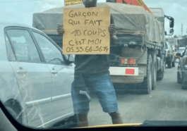 Umusore yajyanye icyapa mu muhanda cyamamaza ko ariwe uzi gutera akabariro kurusha abandi