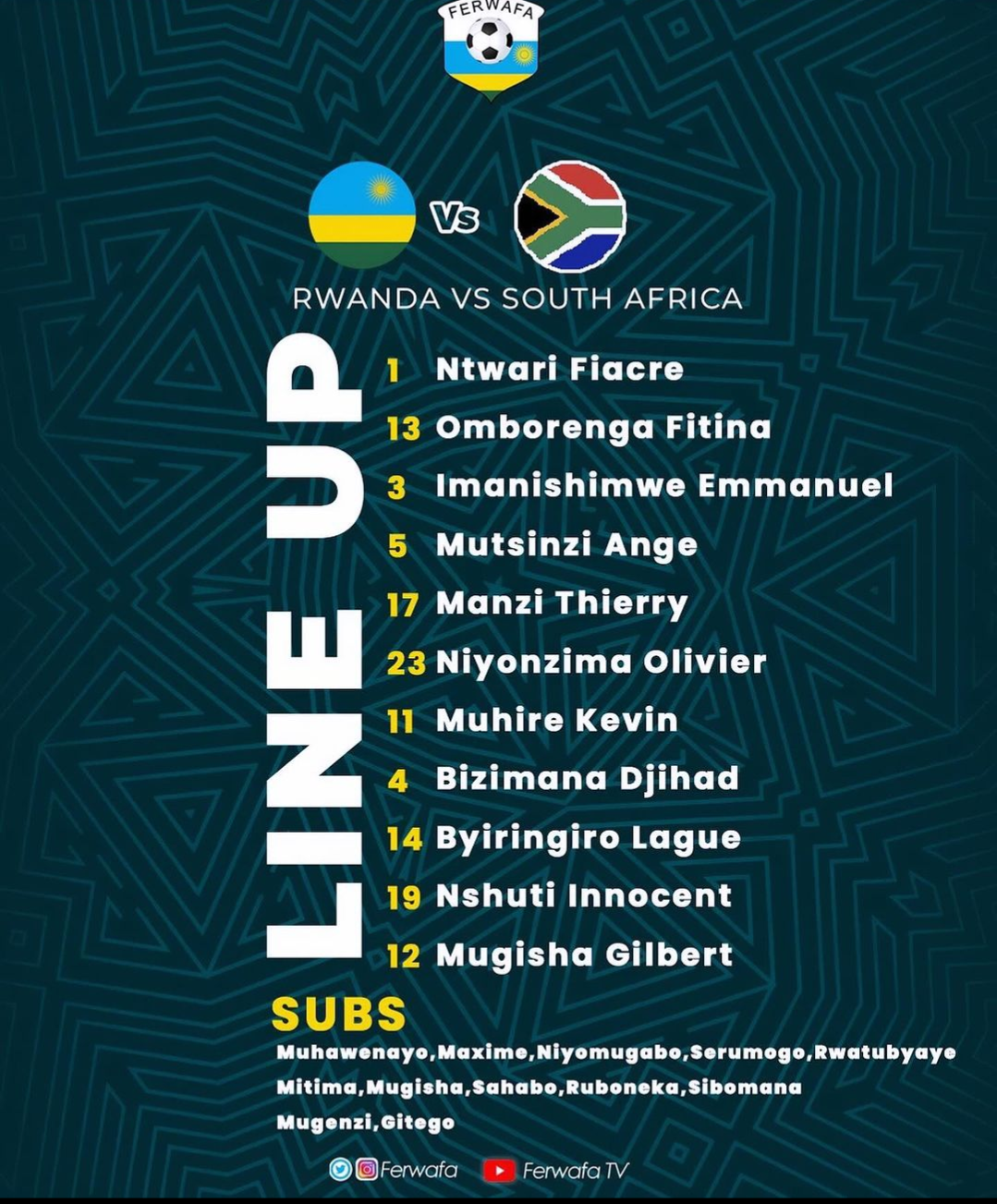 Muri aka kanya ishyize hanze urutonde rw’abakinnyi 11 bagiye kubanza mu kibuga.