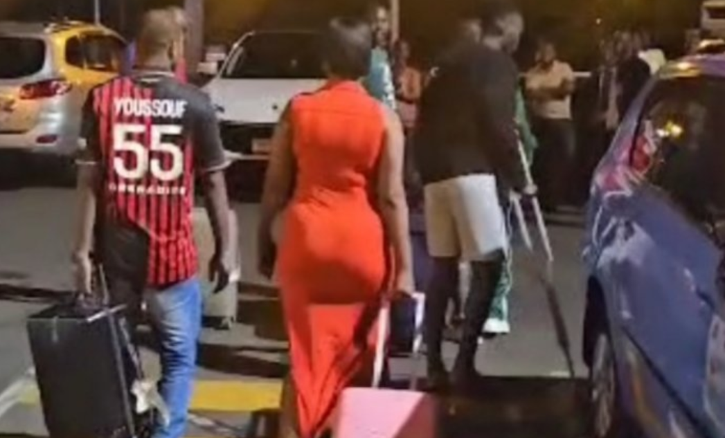 Uyu mukinnyi yaje kubagwa iyi mvune yo mu ivi ubu akaba agendera ku mbago ari nazo yageze ku kibuga kibuga cy’Indege i Kanombe agenderaho.