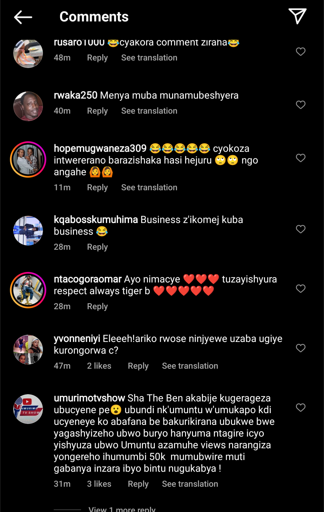 Reba ibitekerezo byatanzwe.