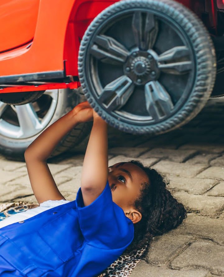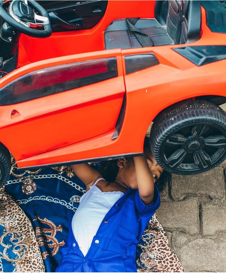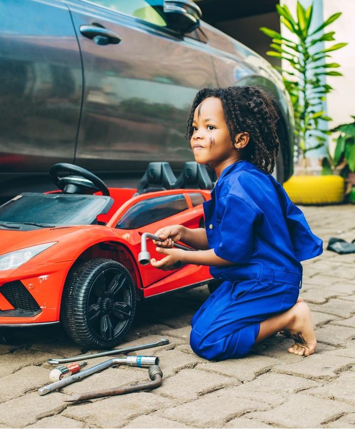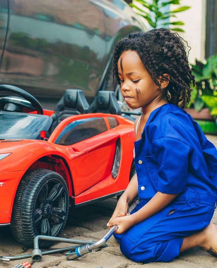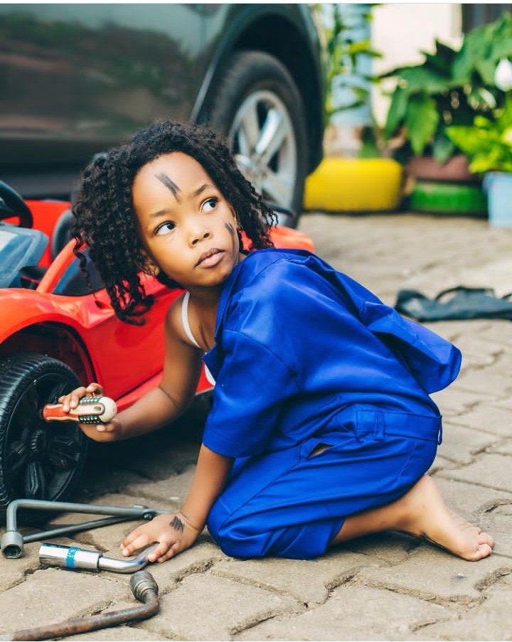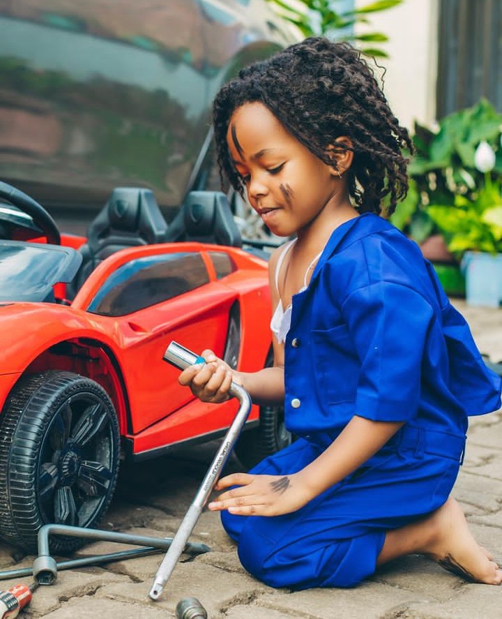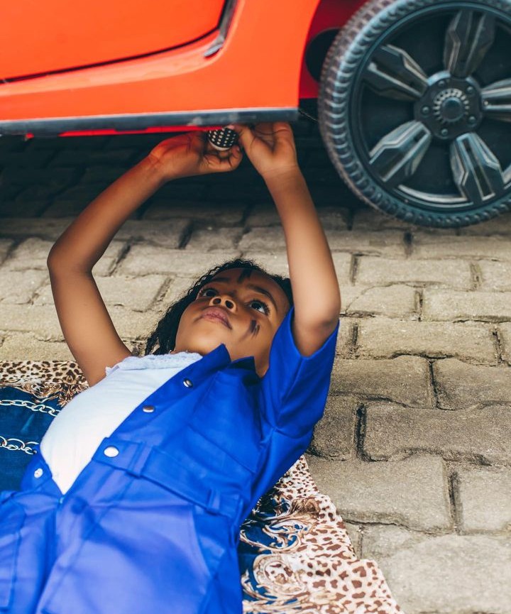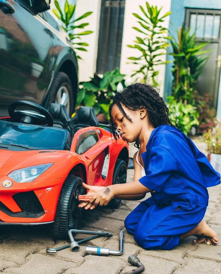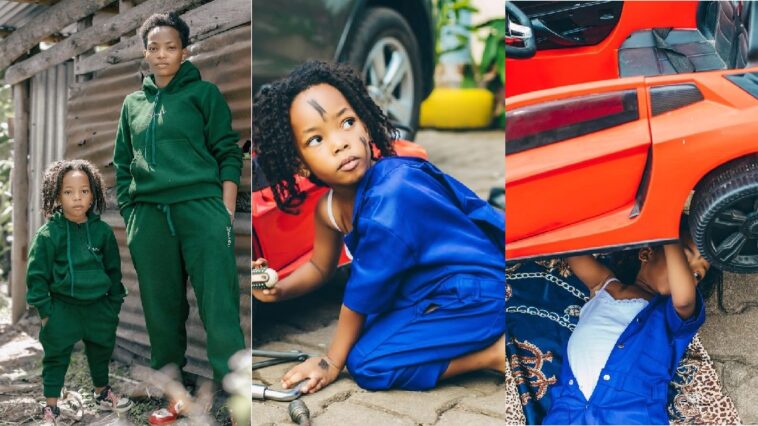 Umwana w’umuraperikazi Young Grace, ukomeje kwigarurira imbuga nkoranyambaga, yatunguranye agaragara arimo akanika imodoka.