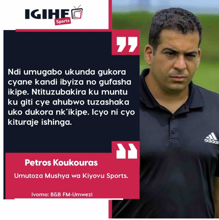 Mu kiganiro yagiranye na BB Umwezi FM, Petros Koukouras yagize ati “Ndi umugabo ukunda gukora cyane kandi ibyiza no gufasha ikipe. Ntituzubakira ku muntu ku giti cye ahubwo tuzashaka uko dukora nk’ikipe. Icyo ni cyo kituraje ushinga.”