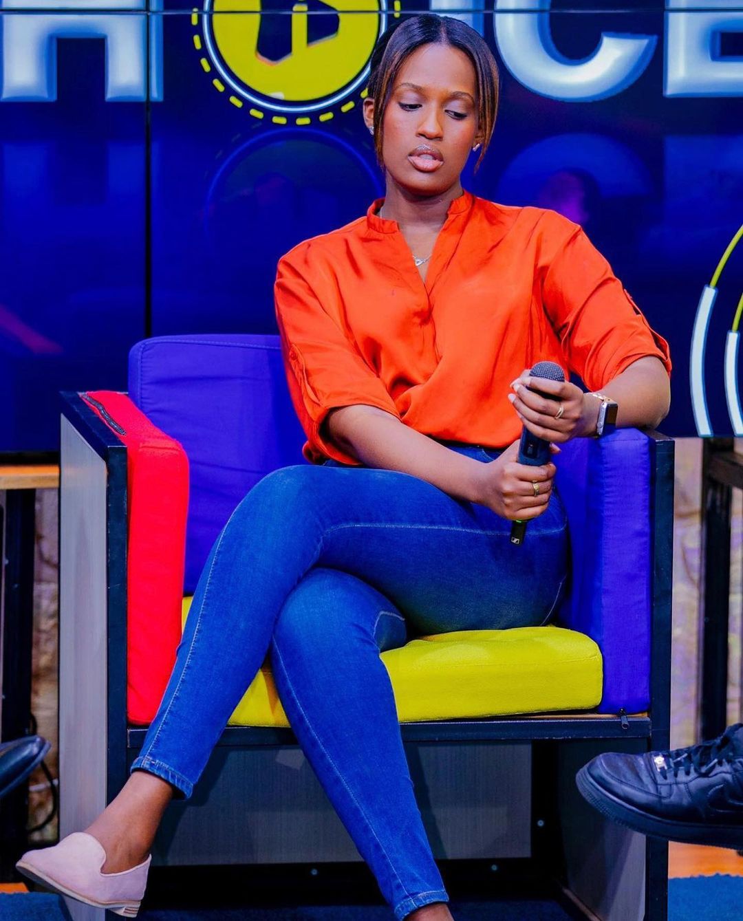 Ifoto igaragaza Miss Nimwiza Meghan wegukanye ikamba rya Miss Rwanda 2019 afashe micro ubwo yajyaga mu kiganiro kuri televiziyo yasakajwe ku rubuga rwa instagram maze abayibonye bose sukwirekura bivayo buri wese avuga akamuri ku mutima bitewe nuko yayibonye.