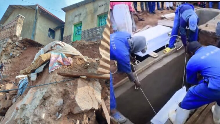 Babashyinguye hamwe: Byari amarira n’agahinda mu muhango wo gusezera bwa nyuma umugore n’abana be baherutse kugwirwa n’inzu i Kigali bahita bitaba Imana – AMAFOTO