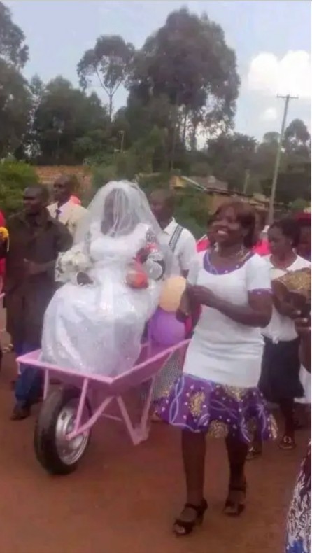Gusa uko byagaragaraga ni uko uyu mugabo yari umugmfundi, cyangwa umuyede kuko muri ubu bukwe bwabo hifashishijwe mo ibindi bikoresho bitandukanye byo mu bwubatsi.   Ndetse n’umugabo yambaye ingofero y’u yubatsi, yewe n’abamuherekeje nabo bari bazambaye.
