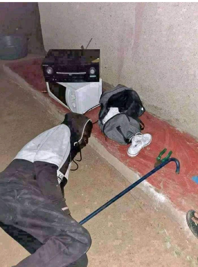 Abagabo babiri bagaragaye baryamye imbere y’umuryango aho baryamye hari n’ibikoresho byo mu nzu bari bamaze kwiba mu nzu y’umukecuru. Bivugwako aba bagabo bari bamaze kwiba ibikoresho byo nzu y’umukecuru wari uryamye aho babanje kwica urugi.