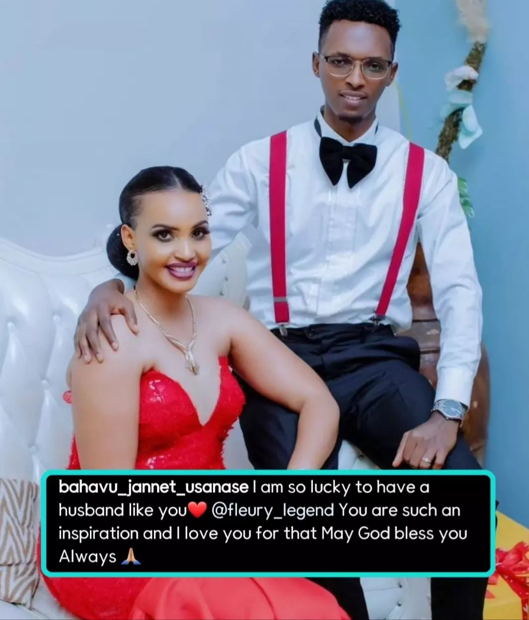 Mu butumwa Bahavu yacishije ku rukuta rwe rwa Instagram buherekeje amafoto yabo bombi, yagize Ati ” Ndi umunyamahirwe kuba mfite umugabo nkawe Fleury ni wowe guhumeka kwanjye kandi ndabigukundira, Imana iguhe imigisha myinshi buri munsi.