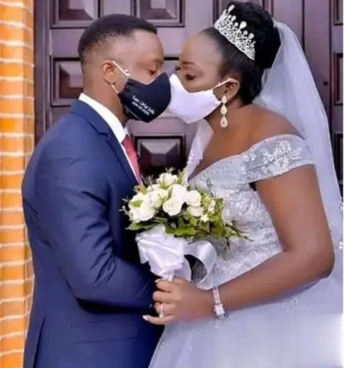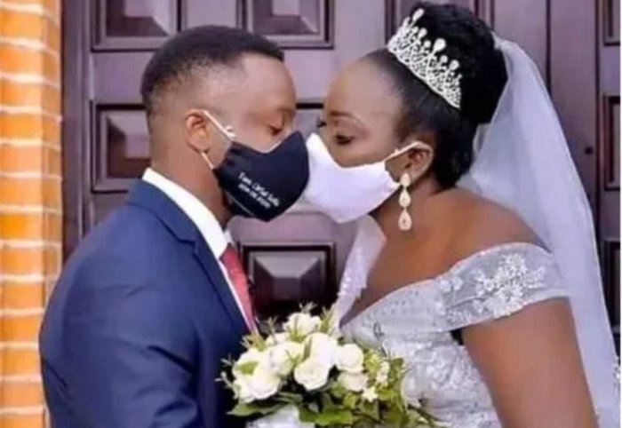 Couple y’umugabo n’umugore bo mu gihugu cya Nigeria bahawe urw’amenyo nyuma yo gukora ubukwe bukeye bagasomana bambaye udupfukamunwa. Bamwe bati icyo Imana yafatanye agapfukamunwa ntigakwiye kugitandukanya.