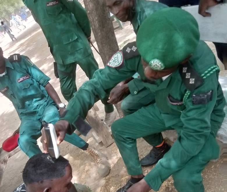 Abakozi bo muri leta ya Borno ya Hisbah bogoshe ku gahato imitwe y’urubyiruko bari bafite imisatsi idashimishije.