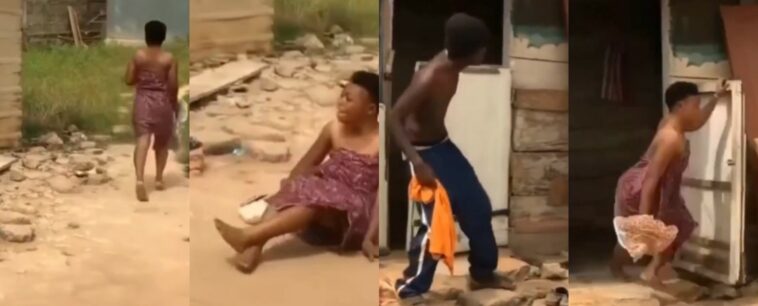 Mu mashusho yagaragaye ku rubuga rwa Instagram yagaragaje umukobwa wasohotse mu nzu yiruka mbese ubona ko yahahamutse bitewe nibyo yaramaze gukorerwa n’umugabo bari kumwe muri iyo nzu.