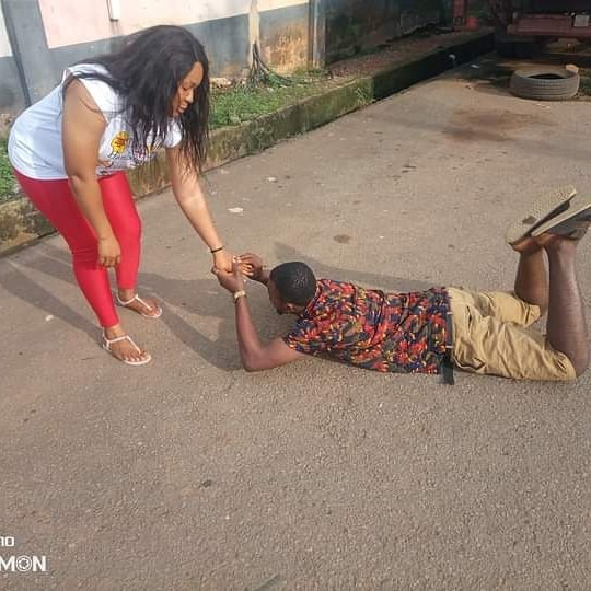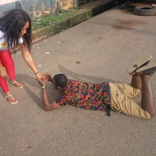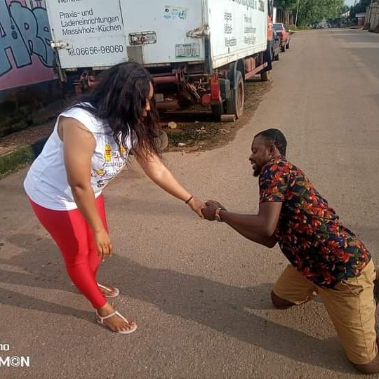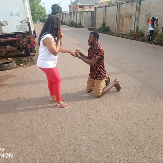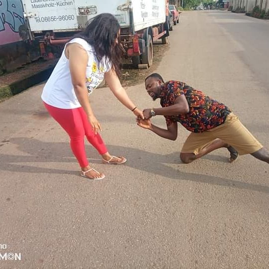 Umunyarwenya ukomeye muri Nigeria yafashwe nk’uwakoze igikorwa cy’ubusazi nyuma yo kwambika impeta umukunzi abanje kuryama hasi mu muhanda.