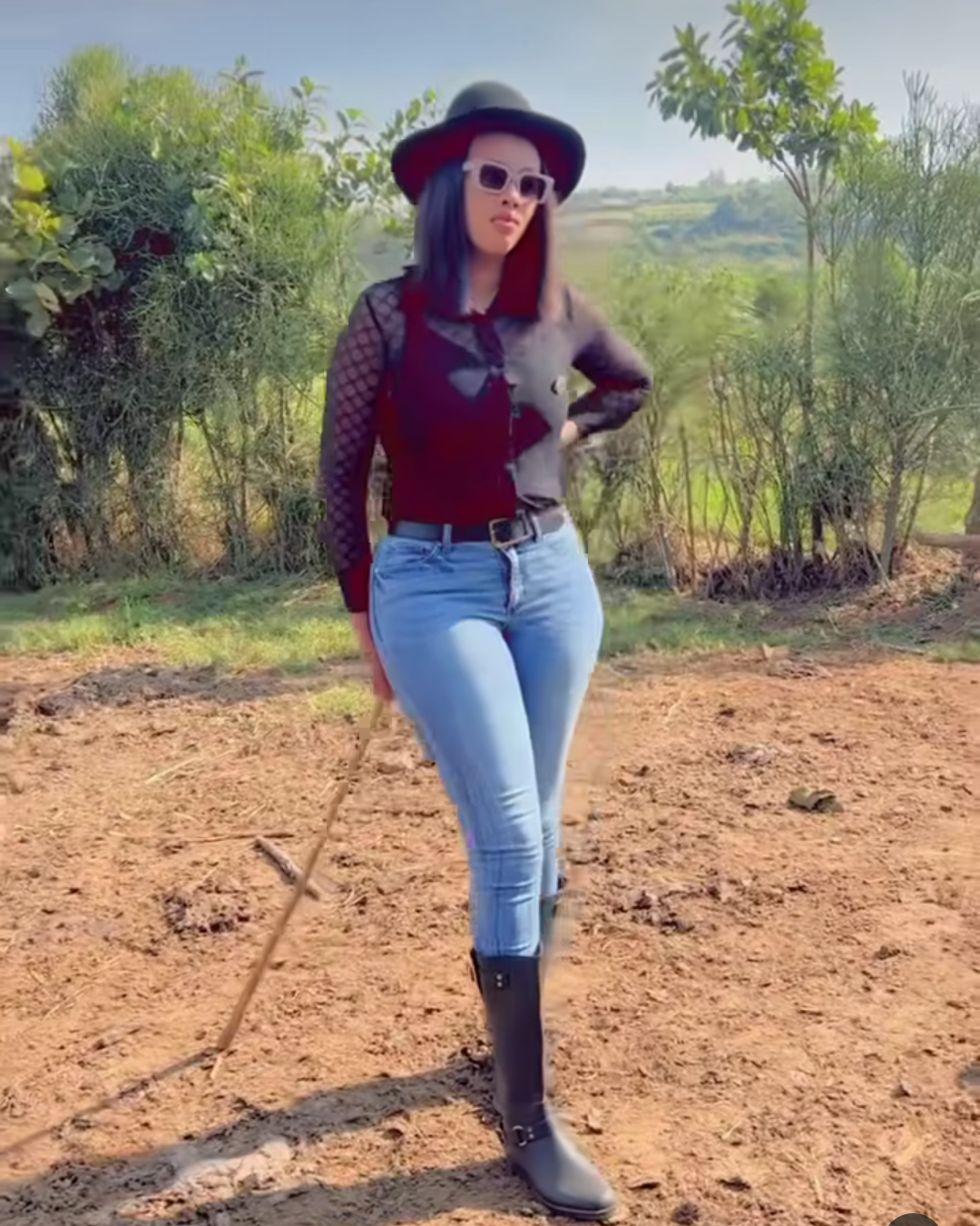 Abinyujije kurukuta rwe rwa Instagram yashyizeho amashusho yambaye bote ari kugenda genda mu ifamu y’inka ze maze abantu batangira kumusaba akazi.
