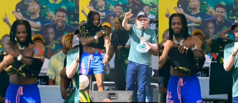 Diamond Platunmz yerekanwe mu birori byo kumurika igikombe cya shampiyona y’igihugu cya Tanzania ikipe ya Yanga Africans iherutse kwegukana aho yanahawe umwambaro wayo ndetse anataramira abakunzi b’iyi kipe.