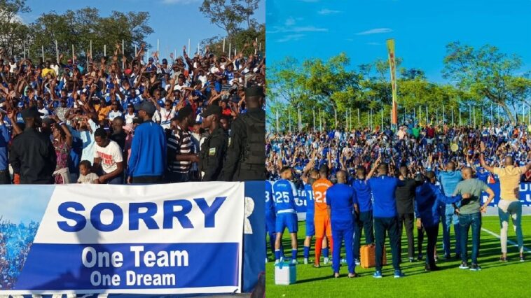 Mu mukino wo kuri uyu wa Gatandatu tariki 13 Gicurasi 2023, wahuje ikipe ya Rayon Sports na Mukura VS, abafana b’iyi kipe yambara Ubururu n’Umweru, basabye imbabazi abakinnyi, nyuma y’imyitwarire bagaragaje ubwo iyi kipe yatsindwaga na Gorilla FC.
