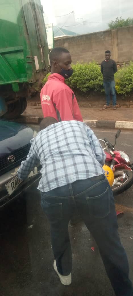 Bibaye nonaha: Mu muhanda uva Mu mujyi werekeza Kagugu habereye impanuka ikomeye cyane y’imodoka yo mu bwoko bwa Toyota Rava4 igonganye na Moto [AMAFOTO]