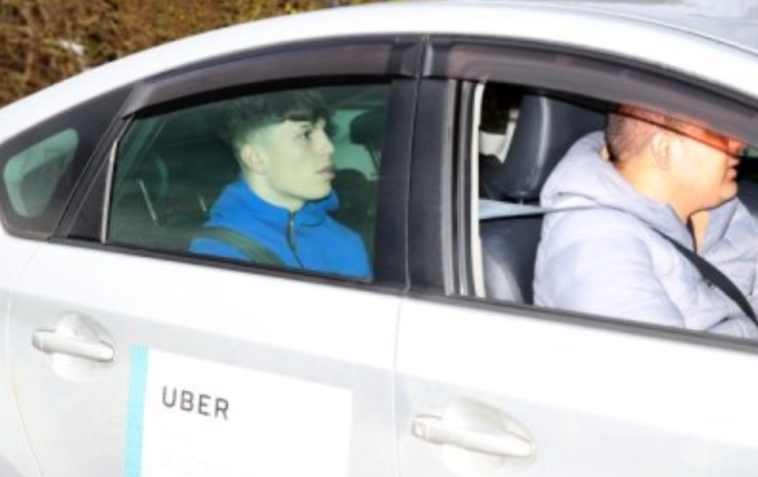 Rutahizamu Alejandro Garnacho yafashwe amashusho agiye mu myitozo ya Manchester United kuri uyu wa Gatanu,tariki ya 17 Gashyantare yateze Taxi ndetse yicaye inyuma.