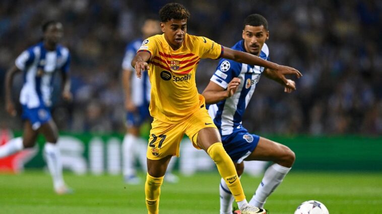 Mu mukino wa UEFA Champions League wahuzaga FC Barcelone na FC Porto, Lamine Yamal yasize bagenzi be mu kibuga ajya mu bwiherero bituma hashira iminota icyenda iyi kipe yo muri Espagne ikina ituzuye.