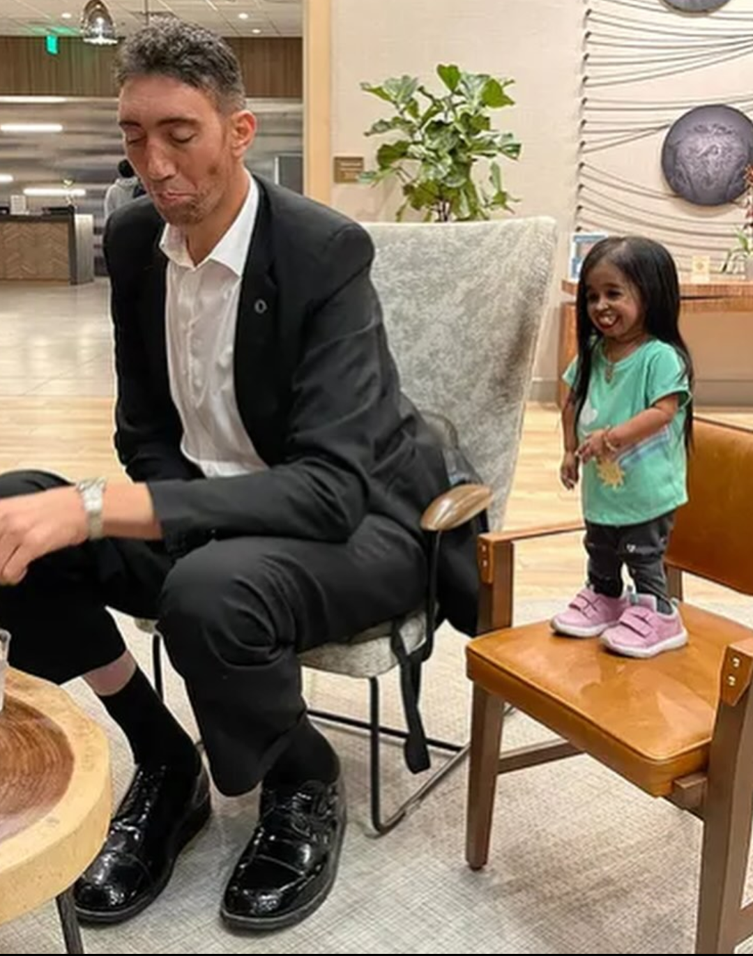 Birashimishije: Nyuma y’imyaka igera kuri 11 umuntu muremure ku Isi yongeye guhura n’umuntu mugufi ku Isi -AMAFOTO
