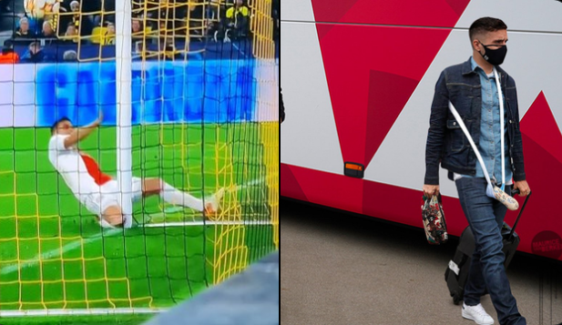 Ubwo uyu mukinnyi yatsindaga igitego akagonga igiti cyizamu