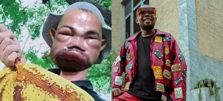 Icyamamare muri sinema nyarwanda Seburikoko yifashishije imbuga nkoranyambaga ze yasangije abakunzi be ifoto y’umugabo wari wabyimbijwe isura n’inzuki nyuma yo kurya ubuki bwari mu gishashara nazo zigahita zimwiyereka.
