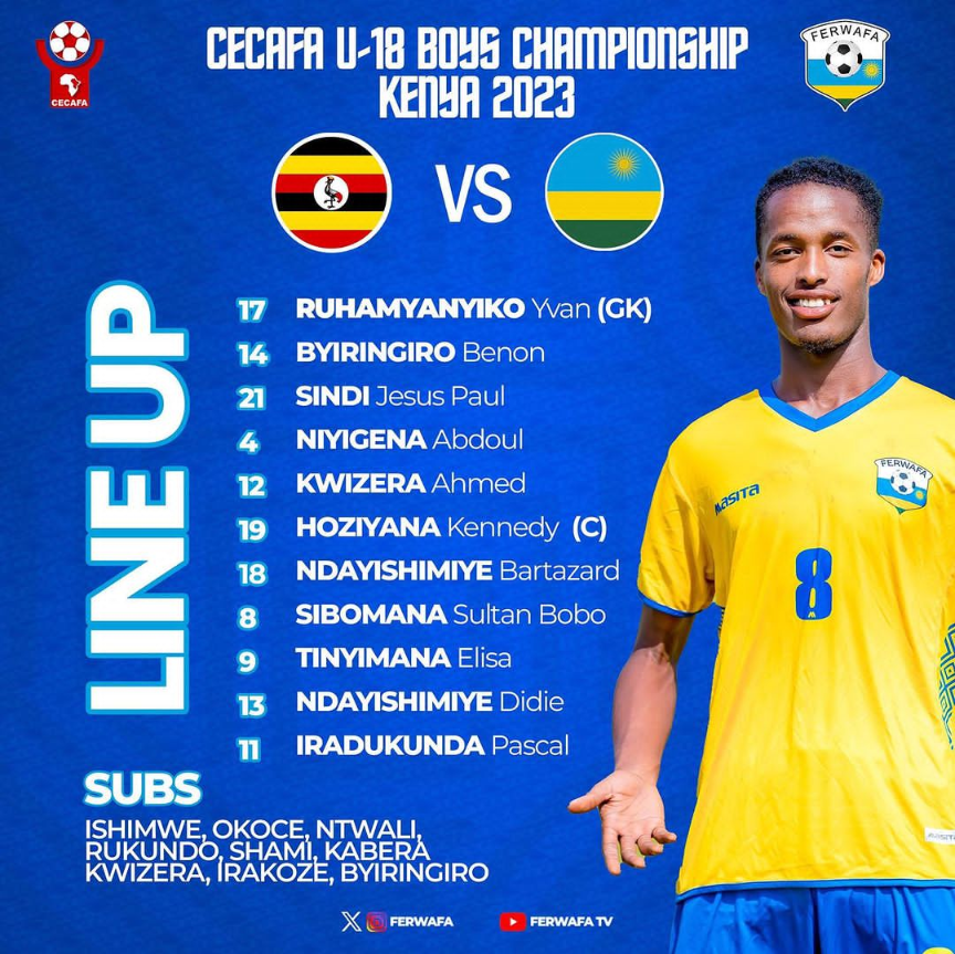 Ikipe y’igihugu y’u Rwanda Amavubi igiye kwesurana n’ikipe y’igihugu ya Uganda mu mikino ya 1/2 muri CECAFA U18 iri kubera mu gihugu cya Kenya n’umukino uratangira saa 11h:00 ukabera kuri sitade ya Jomo Kenyatta Stadium iri Kisumu.