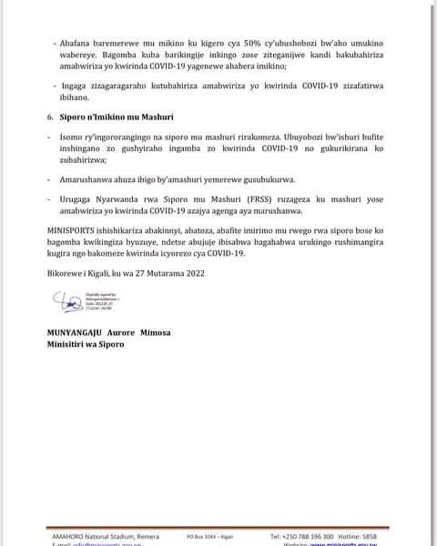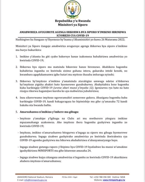 Aya mabwiriza mashya ya MINISPORTS aremerera abafana kugaruka bakaza ku bibuga ariko ama stades akajya yakira abafana bangana na 50%
