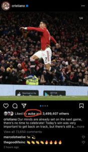 Nyuma gato y’uyu mukino tubibutse ko hari ifoto yasakaye ku mbuga nkoranya mbuga aho uyu mukinnyi yari mu bantu bakunze (liked) ifoto ya Christiano Ronaldo wishimiraga intsinzi yo mu rugo bataherukaga.