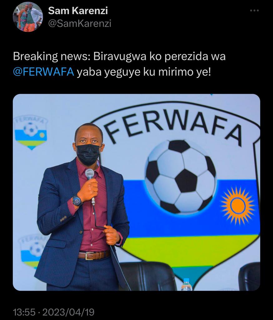 Nk’uko bitangazwa n’umunyamakuru Sam Karenzi abinyujije ku rukuta rwe rwa Twitter ngo biravugwa ko Perezida wa FERWAFA yeguye.