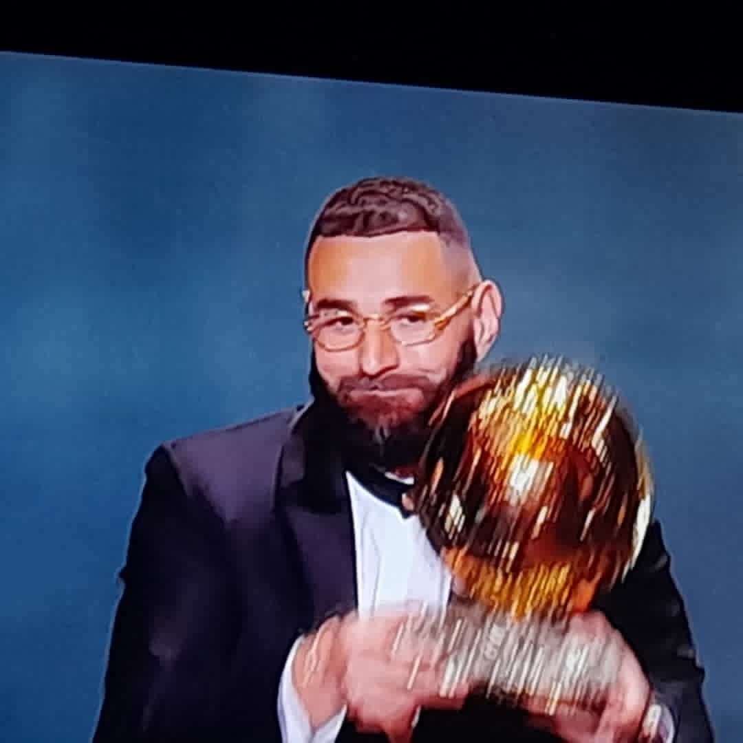 Ifoto: abitabiriye umuhango wo gutanga Balloon D’or barijijwe n’ifoto ya Benzema wari waragizwe insina ngufi yagaragajwe muri uwo muhango