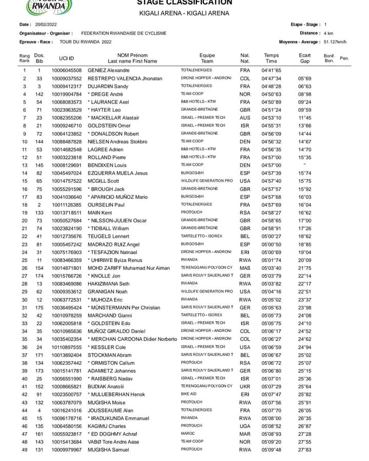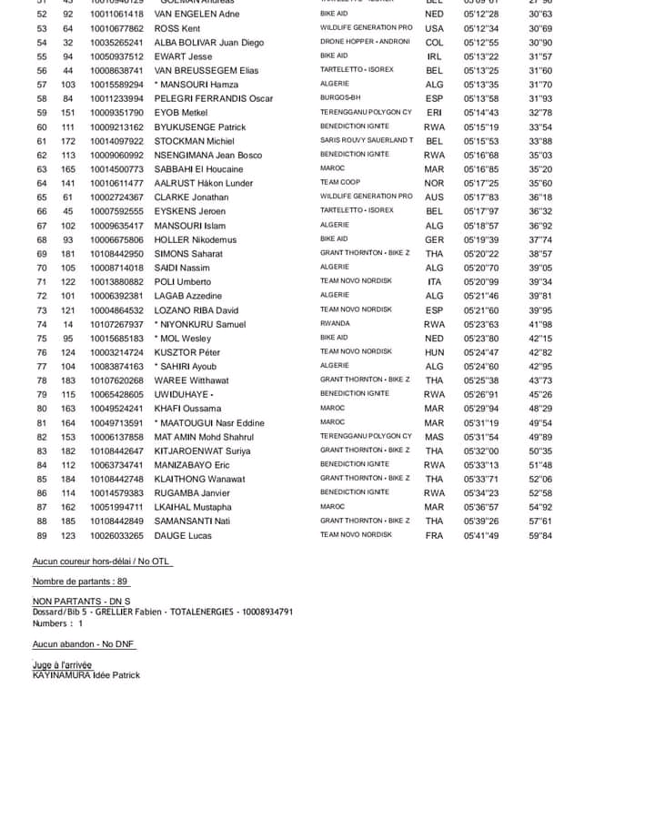 umunyarwanda waje hafi ni Uhiriwe Byiza Renus uri ku mwanya wa 24, aho yakoresheje iminota 5′ n’isegonda 1.