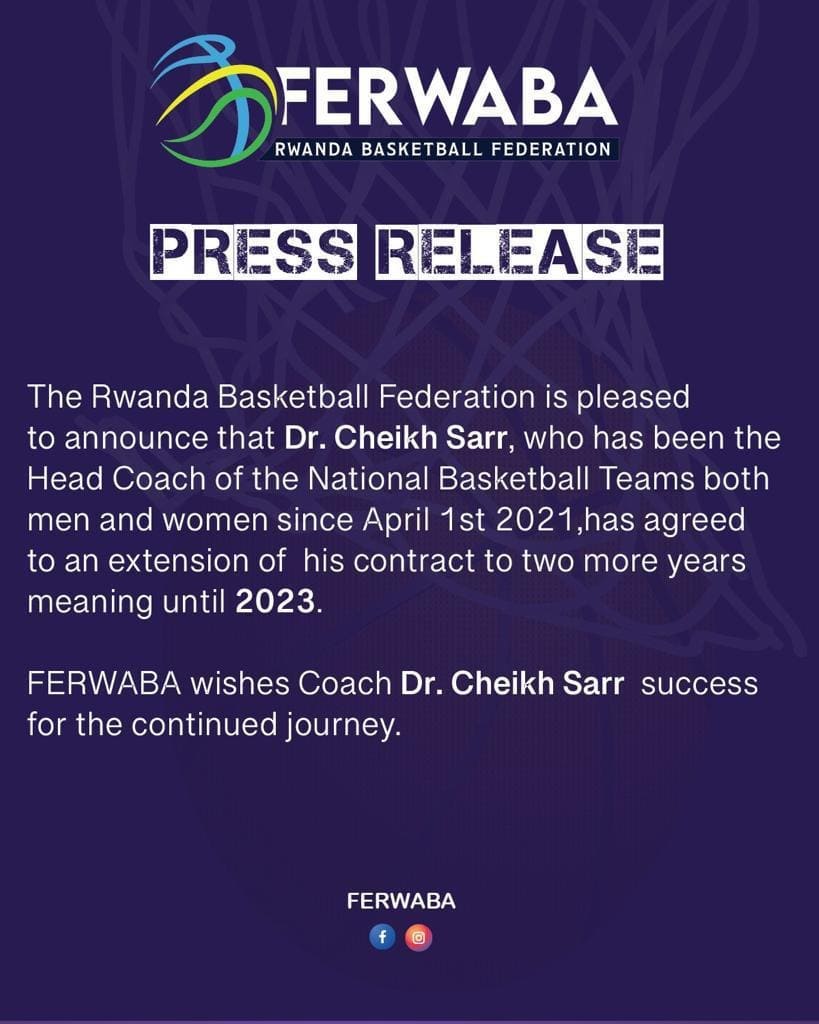 Umutoza w’ikipe y’igihugu Amavubi y’umukino wa basketball Sheikh Sarr yongerewe amasezerano y’imyaka azamugeza mu mwaka wa 2023.