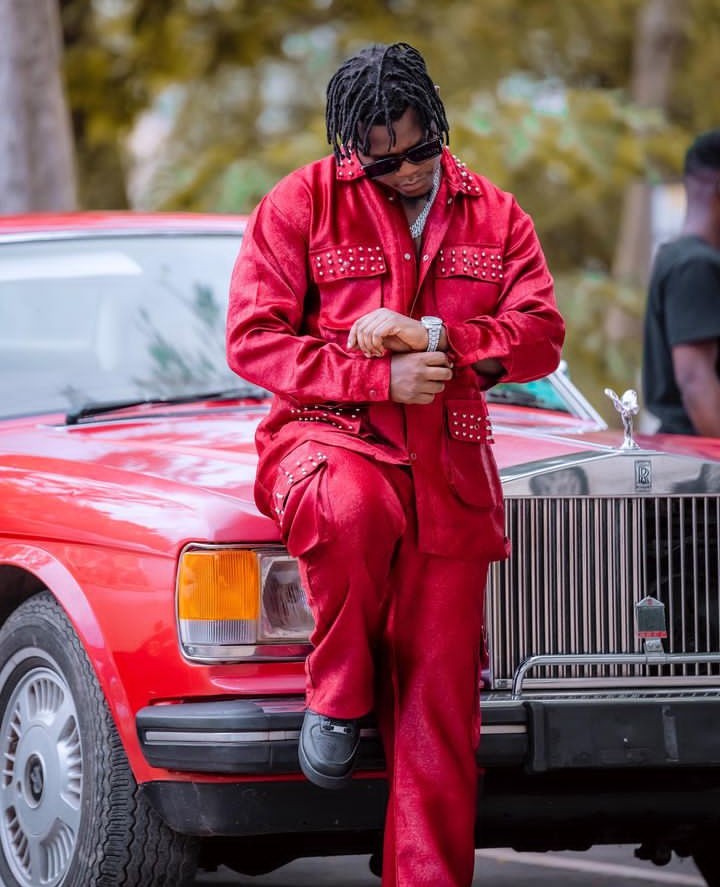 Abinyujije ku rukuta rwe rwa Instagram, Bruce Melodie yasangije abamukurikira amafoto amugaragaza yegamye ku modoka ifite ibara ry’umutuku ndetse nawe yari yambaye umwambaro w’umutuku.
