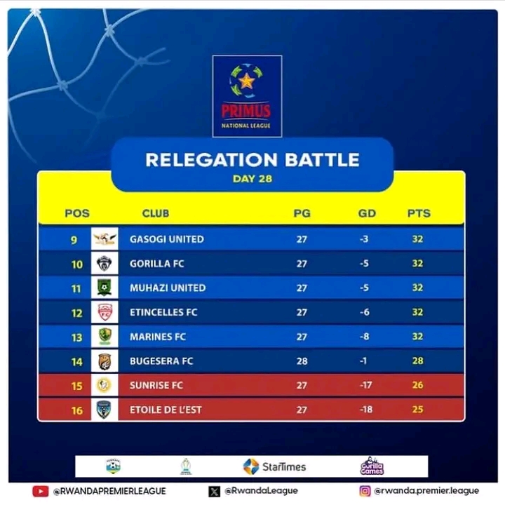 Nyuma y’uyu mukino wabereye i Nyamirambo, Bugesera FC yavuye mu makipe abiri ashobora kumanuka, gusa amakipe ayirinyuma afite ikirarane.