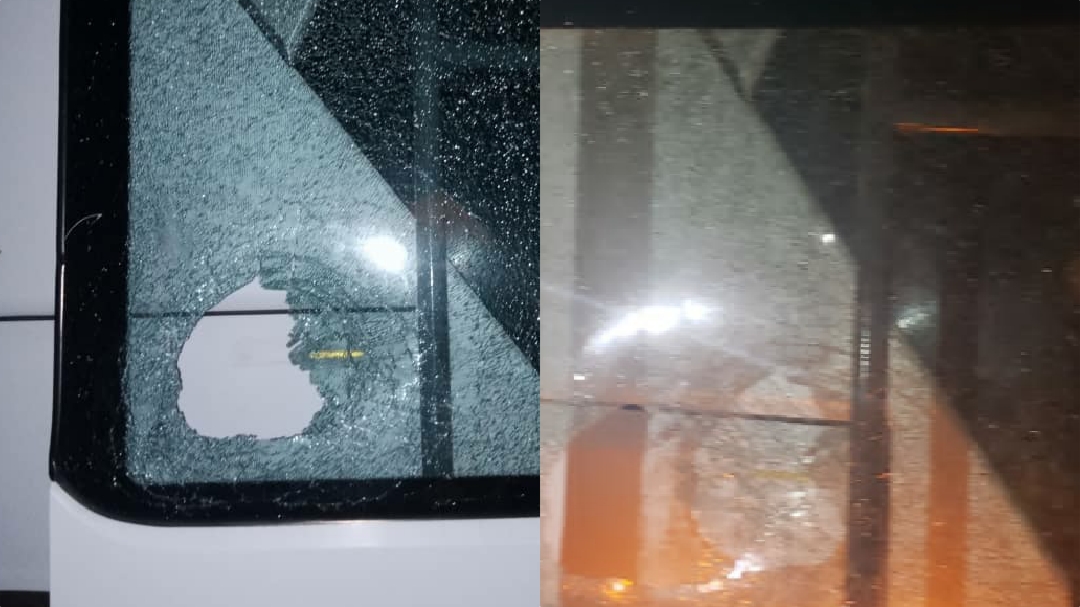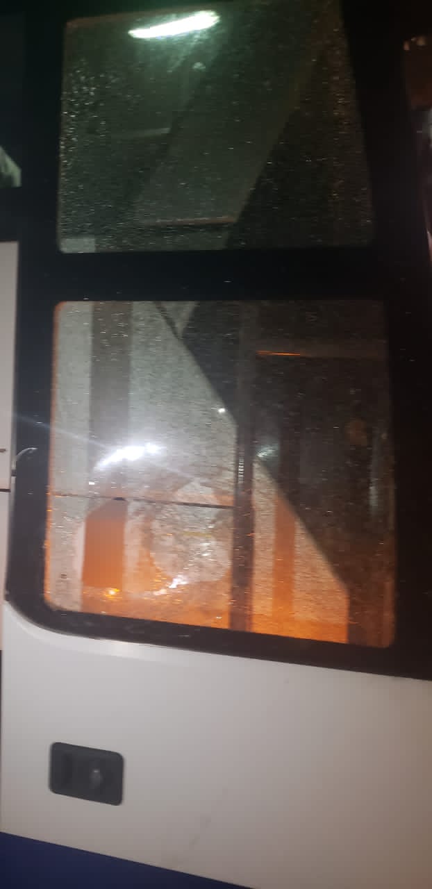 Amafoto yageze kuri Yegob.rw, yerekana imodoka bivugwa ko yari itwaye abafana ba APR FC yamenaguritse ibirahure.