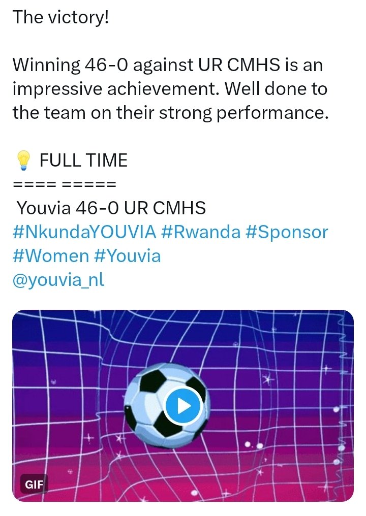 Buri minota 2 hajyagamo igitego: Ikipe ya YOUVIA WFC yanyagiye Kaminuza y’u Rwanda ibitego 46, rutahizamu wabo atsinda 13 wenyine