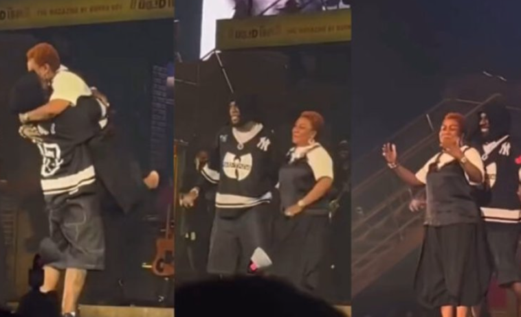 Burna Boy yafashe mama we amuzamura mu kirere ku rubyiniro abantu bavuza induru -Amashusho