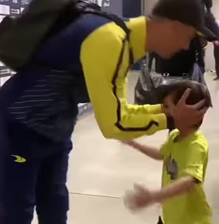 Cristiano Ronaldo ubwo yasohokaga mu rwambariro akana k’agahungu kasaga nk’aho kamutegereje kamubonye kanga kubyihererana maze karamuhamagara nawe aza agasanga maze karasimbuka kagaragaza ibyishimo byinshi kari kamufitiye.