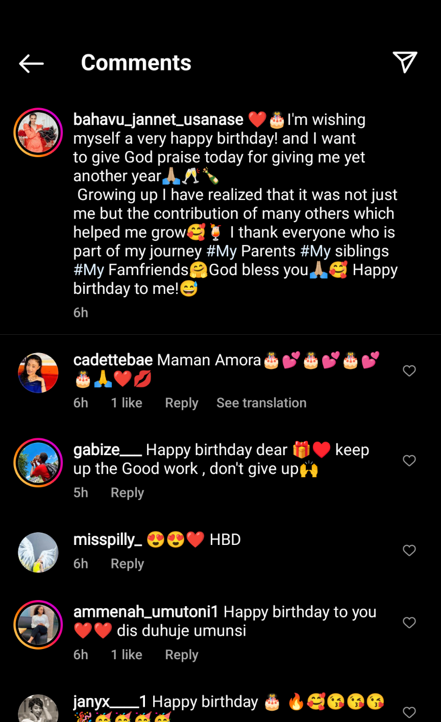 Mu mashusho yashyizwe ku mbuga nkoranyambaga za Bahavu Jannet yamugaragaje ari kuririmba indirimbo imwifuriza isabukuru ye y’amavuko maze abakunzi be baboneraho kumwifuriza kugira umunsi mwiza w’isabukuru y’amavuko.