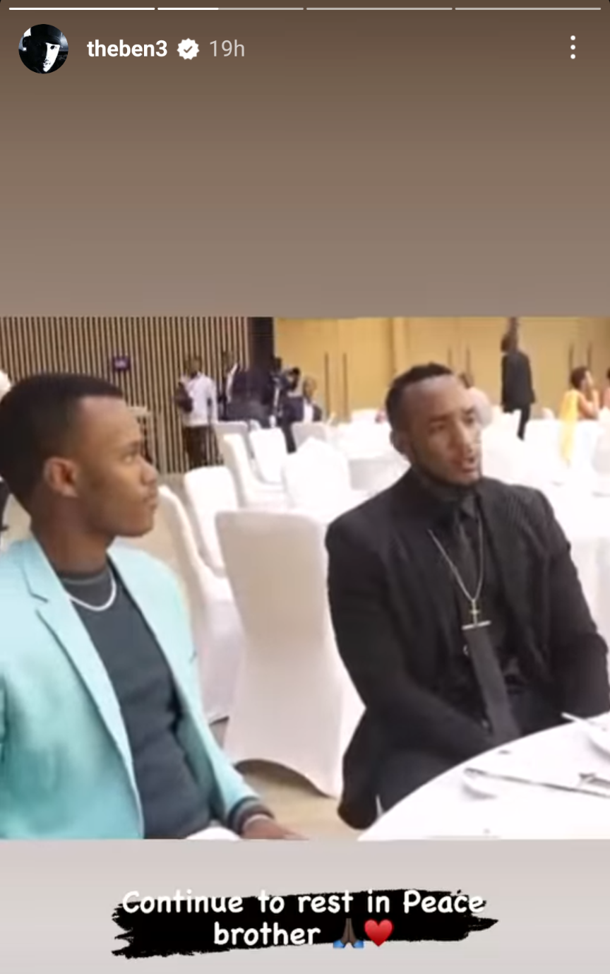 The Ben abinyujije ku rubuga rwe rwa Instagram yashyizeho amashusho ari kumwe na nyakwigendera Burabyo Yvan Buravan maze amwifuriza kuruhukira mu mahoro mu magambo ye yagize ati:” Komeza kuruhukira mu mahoro muvandimwe”.