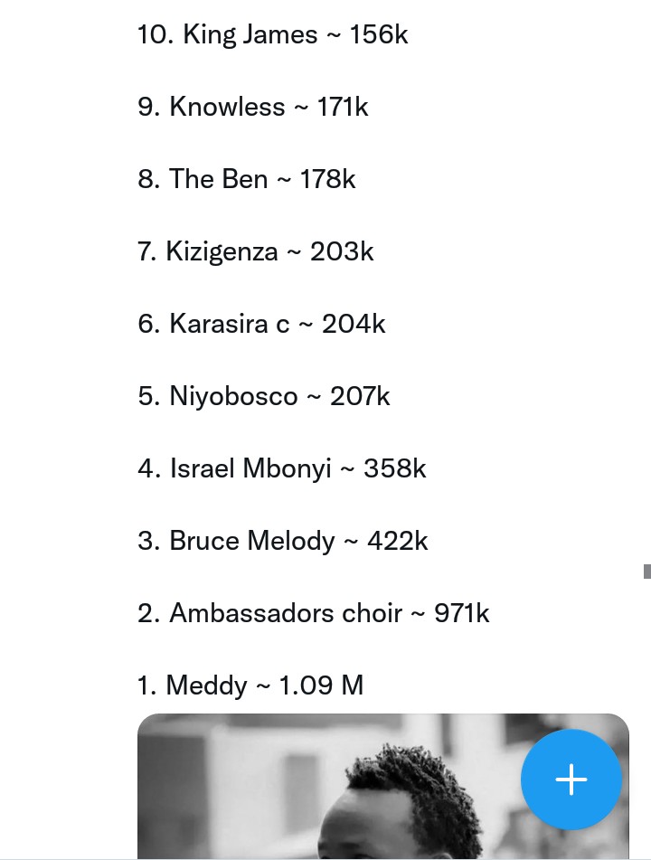 Hasohotse urutonde rwerekana uburyo abahanzi nyarwanda bakuriranwa kuri YouTube, hagaragajwe abanzi 10 baza imbere y’abandi.