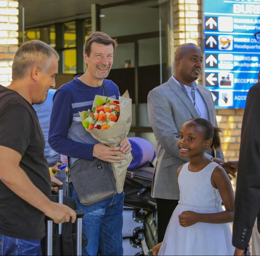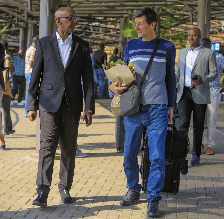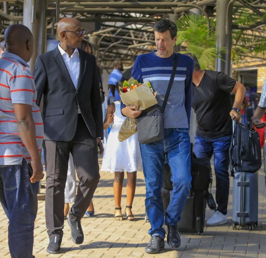Umufaransa Froger Thiery w’imyaka 60 y’amavuko  wamaze kumvikana n’ikipe ya APR FC amaze kugera ku kibuga cy’indege i Kanombe aho yakiranywe urugwiro n’abakunzi ba APR FC.
