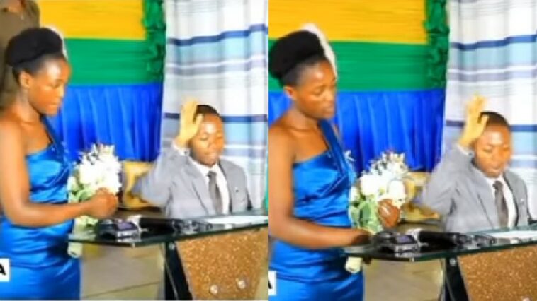 Burya ntabwo biba byoroshye! Umugabo wari wagiye gusezerana n’umugore we, yahawe urw’amenyo nyuma yo kunanirwa kuvugira ku ibendera (VIDEWO)