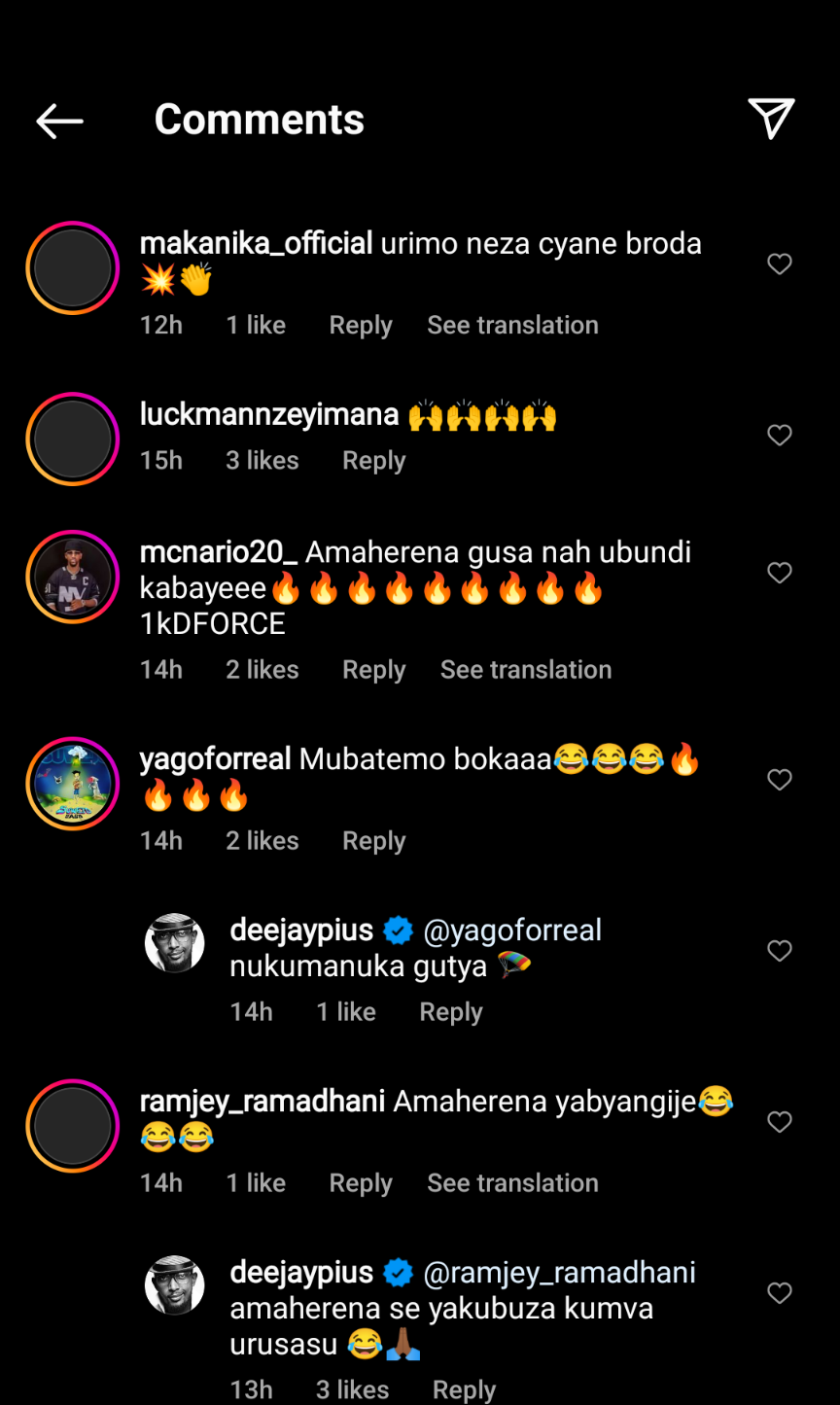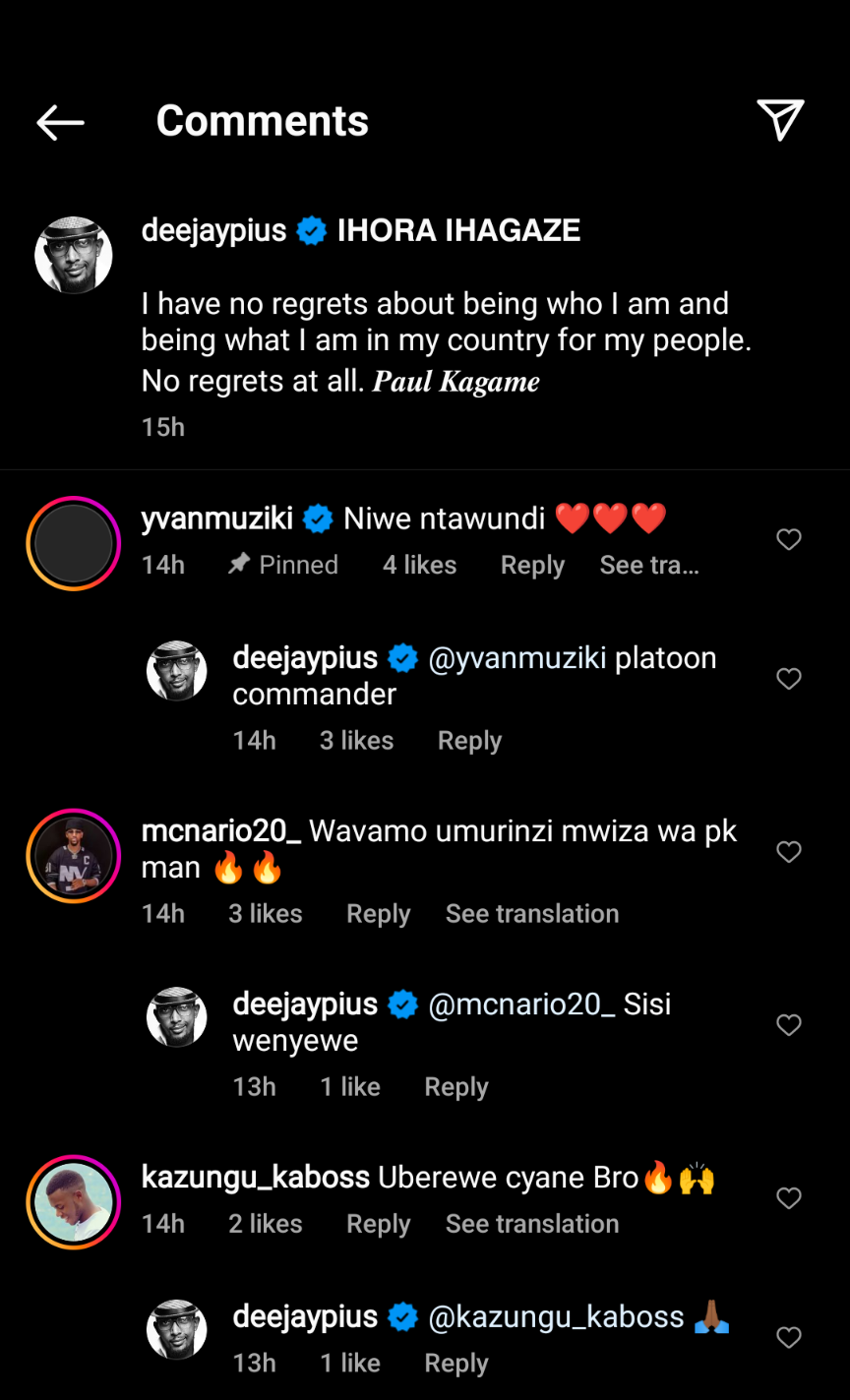 Mu mafoto yashyizwe ku rubuga rwa Instagram n’umuhanzi Deej Pius yamugaragaje ari kumwe na Yvan Muziki bambaye imyambaro y’ingabo z’Igihugu cy’u Rwanda kandi bafite n’imbunda mu ntoki mbese ubona ko ari abasirikare buzuye akaba ari bintu byavugishije abantu cyane.