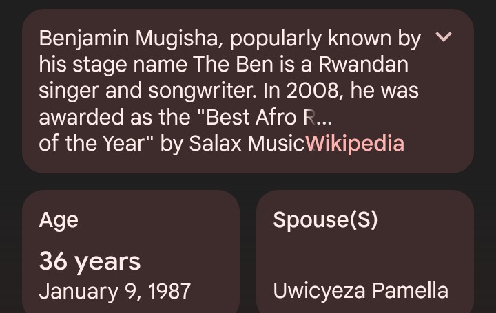 The Ben kuri ubu afite imyaka 36 y’amavuko akaba yaravutse muri 1987, uyu The Ben arusha Pamella imyaka 13 yose kuko Pamella yavutse muri 2000 akaba afite imyaka 23 y’amavuko.